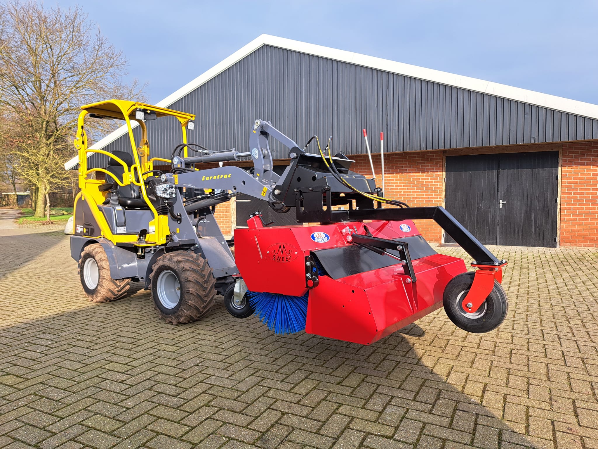 Deze veegmachine is uitgerust met een Euro aansluiting zodat hij deze voor zowel voorlader van de trekker en de Weidemann 1280 mini-shovel kan inzetten.
